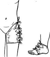 Рис. 5.1. Пов'язка по Маштафарову з підручних засобів: а– на спину; б – на стегно;