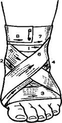 Рис. 5.12. Восьмиподібна пов'язка на гомілковостопний суглоб.