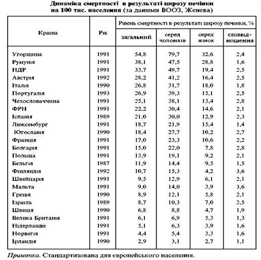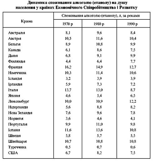 Зловживання алкоголем призводить до великої кількості захворювань, зокрема алкогольних психозів і цирозу печінки (табл. 8). Послаблення соціальної орієнтації залежних від алкоголю людей за певних умов призводить до наркоманії, поширення випадкових статевих стосунків.