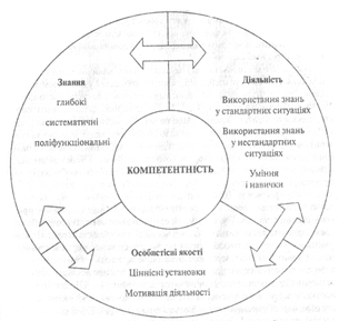 Таким чином, компетентність забезпечується комплексним поєднанням усіх структурних компонентів – знань, діяльність, особистісних якостей; за умови не сформованості чи недостатнього рівня сформованості бодай одного з них функціонування компетентності виключається.