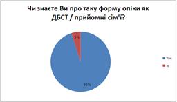 Отже, з рис. 2.1. можна зробити висновок, що студенти Сумського державного педагогічного університету ім. А.С. Макаренка майже всі знають про таку форму опіки як ДБСТ / прийомні сім’ї (95 %).