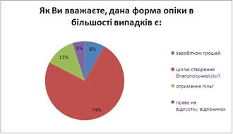 Зображена діаграма ілюструє нам, що дана форма опіки є ціллю створення благополучної сім’ї. Один з опитуваних зазначив, що дана форма опіки в більшості випадків є «частіше користю й погіршенню природного відбору».