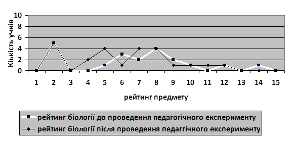 Наведемо зведений графік зміни рейтингу предмета шкільної біології після проведення нами педагогічного експерименту (рис.3):