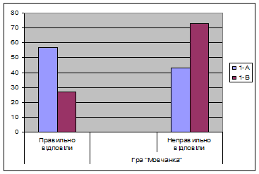 Отже, із таблиць та діаграм видно, що більші зрушення у правильності відповідей учнів в усних обчисленнях протягом навчального року відбулися в 1‑А класі. Ми пояснюємо це тим, що учні 1‑А класу навчалися за нашою експериментальною системою (порівняно з 1‑В класом, де навчання проходило у звичайній формі).