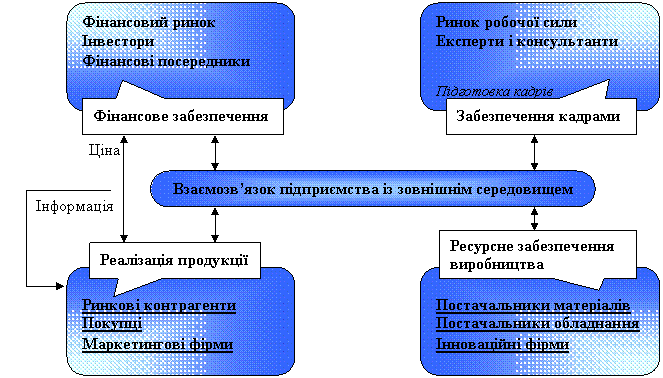 Рис. 1. Взаємозв’язки підприємства з суб’єктами зовнішнього середовища по виробництву і обмінних операціях