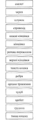 Двоє учнів складають біля дошки із запропонованих карток асоціативні кущі за темами «Органи травлення», «Скелет».