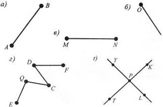 Які фігури зображено на ньому? Назвіть: три відрізки; три промені. Скільки прямих зображено на рисунку?
