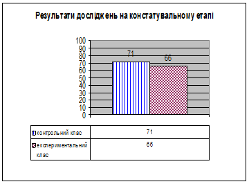 Щоб краще порівняти результати досліджень на констатувальному етапі і контрольному ми пропонуємо розглянути діаграми, які показують, наскільки покращився рівень культури мовлення в учнів експериментального класу. Розглянемо спочатку результати аналізу на констатувальному етапі дослідження (Діаграма 1).