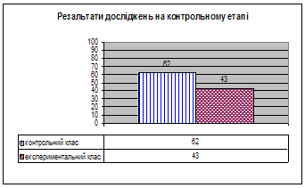 Аналізуючи результати у даній таблиці, можна зробити висновок про низький рівень культури мовлення молодших школярів як контрольного так і експериментального класів.