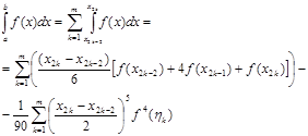 Знайдемо залишковий член квадратурної формули Симпсона. Для цього з наближеної рівності (2.3.2) запишемо формулу для похибки