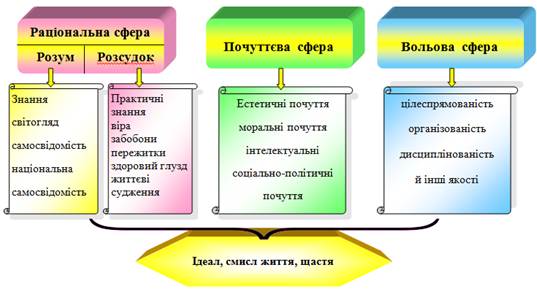 Духовний світ особистості - це духовне життя людини в його цілісності і специфічності. Категорія «духовний світ» означає не тільки механізм психіки (воля, мислення, почуття), а й зміст людських думок, прагнень, а також спрямованість волі.