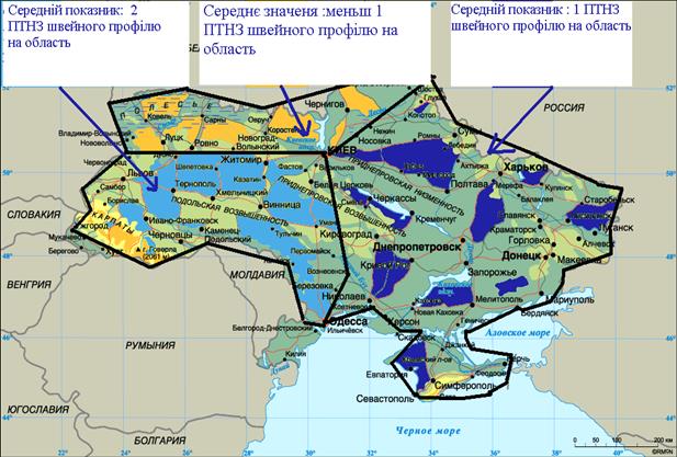 Рис. 2.1 - Особливості розміщення ПТНЗ швейного профілю по території України