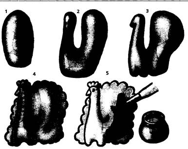 З іншого кінця форми відтягни пластилін (глину) і пальцями утвори хвіст (мал.З).