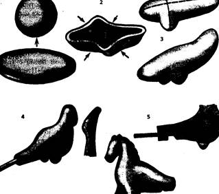 Після підсихання (а не висихання) виріб знімають із моделі, зачищають і легко загладжують вологою губкою. Можна ще до основної форми доліпити невеличку деталь.