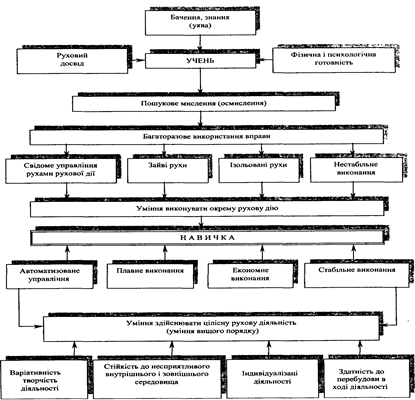 Хід формування рухових умінь і навичок можна зобразити схематично (Рис. 2).