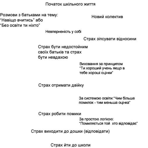 5. Страхи. В цьому пункті я склала схему появи декількох страхів, які утворились в зв’язку з початком шкільного життя.