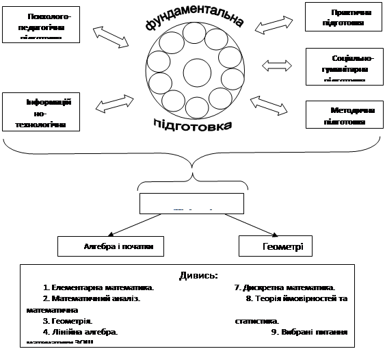 Рис. 1. Система фундаментальної підготовки майбутніх учителів математики (загальнопедагогічний рівень)