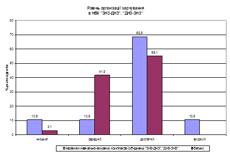 Аналіз статистичних даних свідчить про те, що в 2006/2007 навчальному році вартість харчування вихованців дошкільних підрозділів навчально-виховних комплексів (об'єднань) коливалася у діапазоні від 0,4грн. до 9,0 грн. При цьому відповідність вартості харчування у розрахунку на одного вихованця вартості харчування по натуральних нормах становить від 10% до100%.