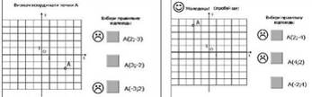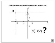 Мета: навчити учнів позначати на координатній площині точку за заданими координатами та читати координати позначеної точки.
