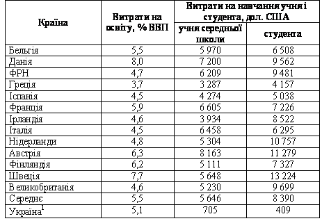 Витрати на освіту в Україні та деяких європейських країнах*