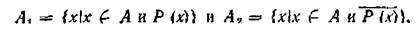 Якщо в множині А є елементи х, що володіють деякою властивістю Р(х), і елементи, що не володіють цією властивістю, то дана властивість Р(х) розбиває множина А на дві підмножини: