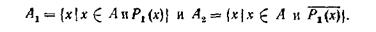 Справді, на першому етапі класифікації деякого поняття виділяється деяка властивість - ознака Pi (x). У результаті дослідження деякої множини об'єктів А ми виділяємо із цієї множини дві підмножини А1 і А2: