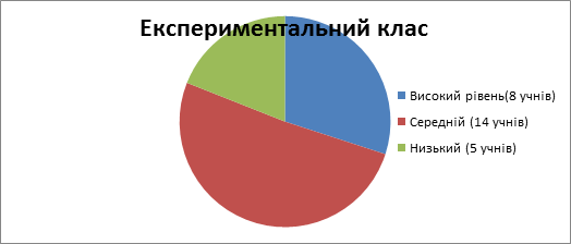 В експериментальному класі 30% (8 учнів) читали швидко, виразно, звертали увагу на темп читання та розділові знаки. 51% (14 учнів) читали в повільному темпі, злито, не звертали увагу на паузи між реченнями. І 19% (5 учнів) читали зовсім повільно, по складах.