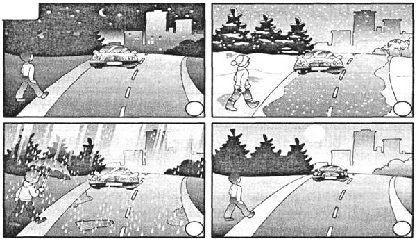 Розглянь малюнки. Зазнач, у яких випадках перешкоди заважають бачити ситуацію на дорозі ( —), а в яких дорога проглядається добре (+).