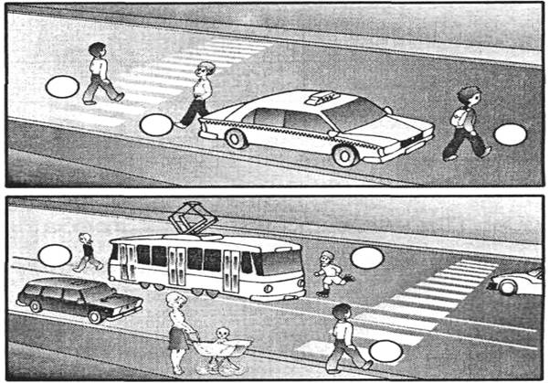 Розглянь малюнки. Хто переходить дорогу правильно, а хто порушує правила?