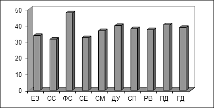 З отриманих даних видно, що в цілому мотивація занять фізичною культурою і спортом у досліджуваного контингенту студентів, незважаючи на те, що вони не є професійними спортсменами, представлена усією сукупністю мотивів. Отримані за кожним блоком кількісні показники є достатньо близькими, розбіжність між найвпливовішим і найменш впливовим мотивами складає усього 16,3%. Найбільш сформованими у студентів є мотиви фізичного самоствердження, підготовки до професійної діяльності, досягнення успіху, їх кількісні значення перевищують 40%, хоча і несуттєво.
