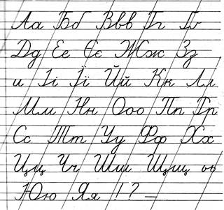 Навчальний рукописний шрифт, який запроваджено в Зошитах з письма, призначених для шестирічних першокласників, прийнято в нашій республіці у результаті кількарічної дослідної роботи по організації навчання шестирічних дітей у підготовчих класах загальноосвітніх шкіл.