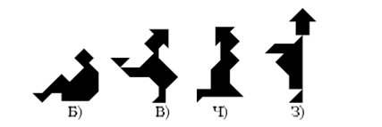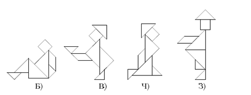 Рис. 2.3. Розшифрування техніки складання фігурок багатокутників на рис.2.2 за допомогою елементів „танграма”
