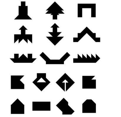 Рис. 2.2. Декілька складених фігурок багатокутників з 7 елементів головоломки „танграм”