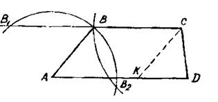 3) Якщо провести пряму СВ||DА й на ній знайти крапки В и В1, що відстоять від А на відстані, рівній бічній стороні, то в цьому випадку крапка В1 буде сторонньої й лише крапка В буде шуканої, причому доказ (ВР = АК) уже ускладнюється.