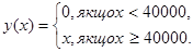 якщо величина збитків більше за 40000 грн., то страхове відшкодування дорівнює сумі збитків, тобто у = х.