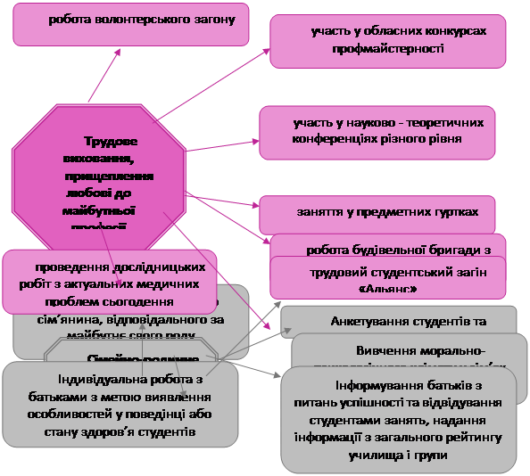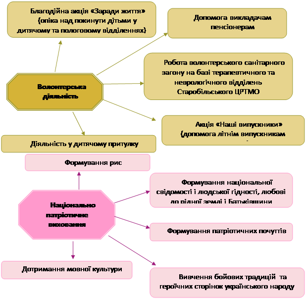 1. Основним видом виховної роботи є виховання у процесі навчання. Навчальна і виховна діяльність тісно пов’язані одна з одною, причому навчальний процес у цілому, кожна дисципліна окремо, націлені на вирішення виховних завдань, які мають свою соціально-вікову специфіку на різних стадіях реалізації освітніх програм. На перших курсах переважне значення мають завдання суспільно-громадського і загальноосвітнього розвитку, для 3-4 курсів пріоритетним стає творче залучення студентів до обраної спеціальності. Акцент робиться на формування навичок і якостей, необхідних у майбутній професії. У сучасних умовах, що відрізняються швидким розвитком науки і лавиноподібним приростом обсягу знань, важливе значення набуває звернення вузівської науки до фундаментальних досліджень і додання фундаментального характеру освітньому процесу. На старших курсах завершується формування особистісних і професійних якостей майбутнього фахівця, при цьому різко зростає необхідність індивідуальної роботи із студентами.