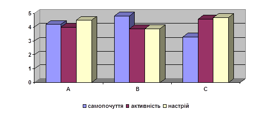 Рис. 2.3.7. Результати діагностики за методикою САН групи В