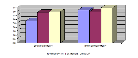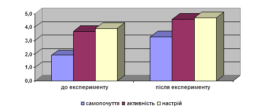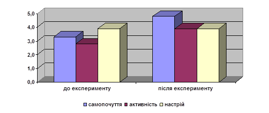 Таким чином, отримані результати свідчать про загальне поліпшення настрою й самопочуття в учнівському середовищі, підвищення активності підлітків, що підтверджується наближенням даних показників до оптимальних.