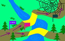 – Знову перешкода на дорозі. “Інформаційний потік”. І моста немає – знову віруси шкодять. Читаємо записку: