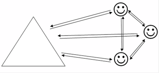 отримують одне й те ж завдання, а після обговорення один член трійки йде у наступну, ще один у попередню і ознайомлює членів новостворених трійок з набутком своєї.