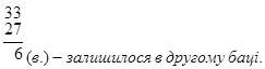 4. Для поливання шкільної ділянки було заготовлено два баки води: в одному 45 відер, у другому - 33. За один і той самий час з кожного бака води забирали порівну. Скільки води залишилося в другому баці, якщо в першому залишилося 18 відер?