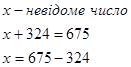 2) Якщо до невідомого числа додати 324, буде 675. Знайти невідоме число.
