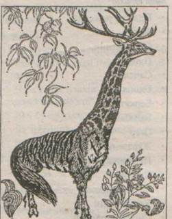 Розгляньте малюнок фантастичної тварини. Із частин яких звірів вона складається? (Фантастичний ссавець має голову оленя, шию жирафи, тулуб тигра, кінцівки лами, хвіст коня)