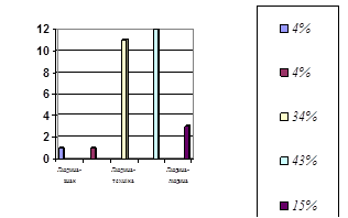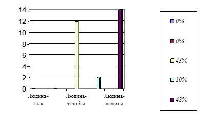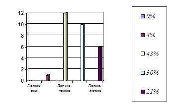 Констатувальний зріз нашого дослідження передбачав виявлення рівня професійного самовизначення учнів технологічного класу. Для цього ми проводили з учнями анкетування за допомогою: диференційно-діагностичного опитувача (ДДО), Анкети "Орієнтація" та карти Інтересів. Він показав, що в цьому класі домінує сфера діяльності "людина-художній образ" (36 %). І тільки на другому "людина-техніка" (28%), яка нас цікавила.