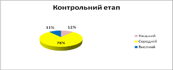 Як видно з таблиці 3 дітей (34%) залишилися на тому ж рівні, 1 дитина (11%) підвищила свій рівень до високого, 4 дитини (44%) підвищили свій рівень до середнього й 1 дитина (11%) залишилася на тому ж рівні (низькому).