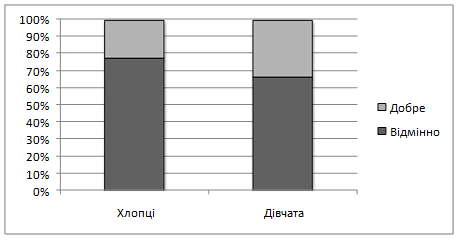 Проаналізувавши результат тесту на спритність ми можемо зробити висновок, що розвиток спритності як у хлопців так і в дівчат незначною мірою відрізняється один від одного, оскільки відмінний результат у хлопців продемонстрували сім учнів, а в дівчат - шість. Кількість дівчаток та хлопців, що брали участь в тестуванні однакова (по 9 дітей).
