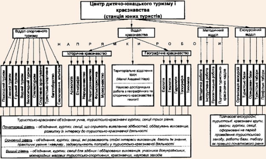 Відбулася також стабілізація структури самих центрів дитячо-юнацького туризму й станцій юних туристів. Типова структура центру дитячо-юнацького туризму (станції юних туристів) відображена на (рис. 3).