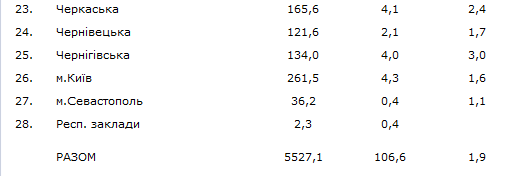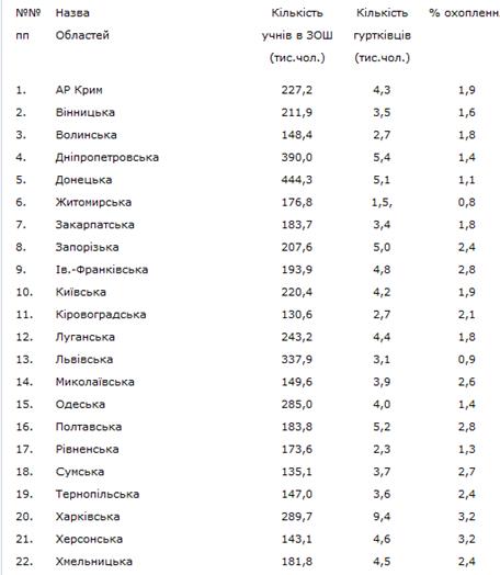 Табл. 2.1. Охоплення учнів туристсько-краєзнавчою гуртковою роботою позашкільними навчальними закладами у 2004 році (за даними державної статистики)