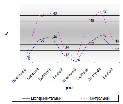 Графік 1. Показники рівня сформованості екологічної культури молодших школярів у наслідок педагогічного експерименту