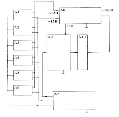 Будову фототиру розглянемо за його структурною схемою (рис.25). Він складається з десяти вузлів: шести однотипних фотореле (вузли А1-А6), світлового пістолету (вузол А7), блоку живлення (вузол А8), лічильника кількості вистрілів (вузол А9) та газорозрядних цифрових індикагорів (вузол А10).